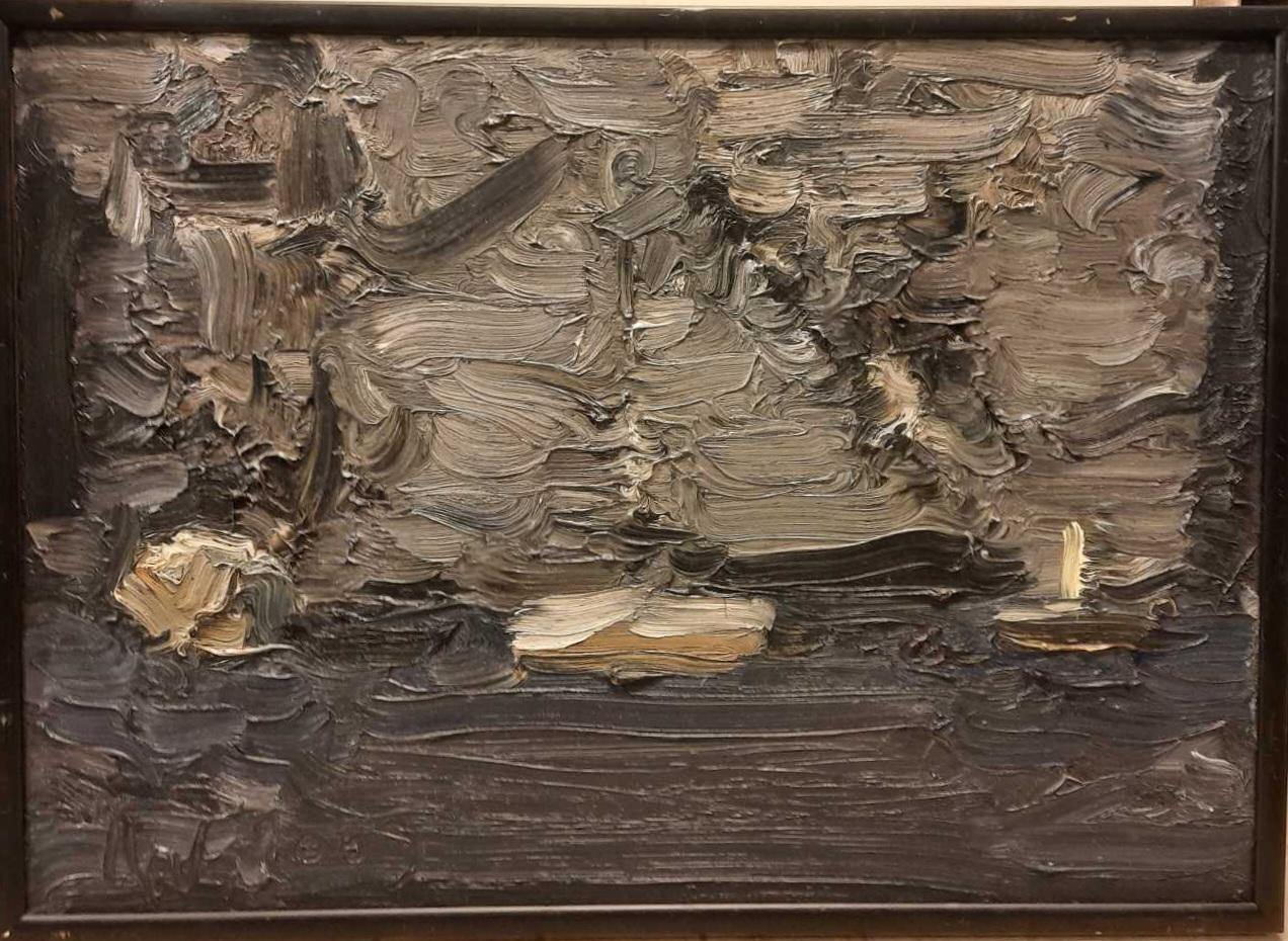 1| P. R. VAITIEKŪNAS "Atversta knyga, žvakė ir akmuo" 2009 m. aliejus-drobė 65x92 cm